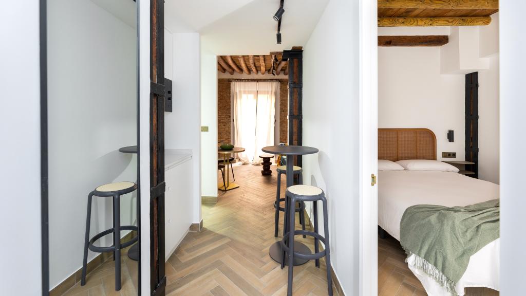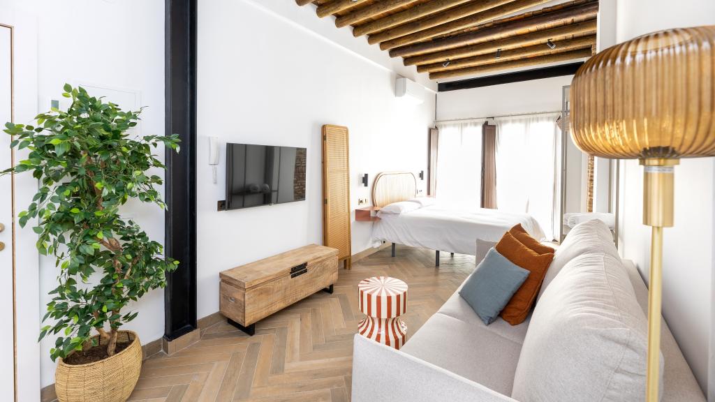 Los apartamentos, con un cuidado diseño rústico-moderno, son espacios muy acogedores. Están totalmente equipados con Aire acondicionado, Baño privado, Televisión, WIFI gratuito, Cocina, etc.